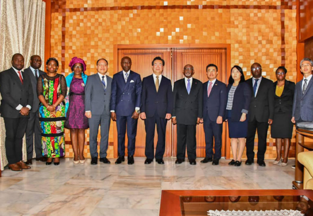 Le lundi 24 Octobre 2022, S.E. MBELLA MBELLA a reçu à son cabinet une délégation officielle coréenne, ayant à sa tête M. CHUNG HWANG-KEUN, Ministre coréen de l'Agriculture, en visite de travail au Cameroun du 24 au 26 octobre 2022. Au cours de cette audience, les deux personnalités ont passé en revue l'état de la coopération entre le Cameroun et la République de Corée, notamment dans les domaines Politique et diplomatique. Si les deux hôtes ont saisi cette occasion pour explorer les pistes de densification de leur coopération dans le secteur de l'agro-industrie, ils n'ont pas manqué de relever la nécessité d'accorder leurs positions dans les instances multilatérales, pour l'intérêt bien compris des peuples Camerounais et Coréens.